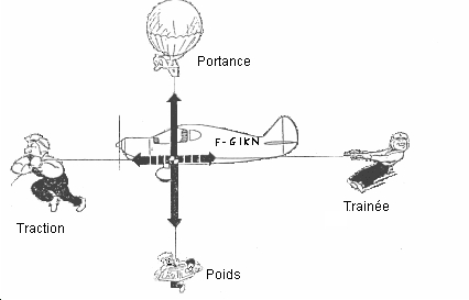 Cette page a pour but de résumer simplement les forces qui permettent à l'avion de se maintenir en l'air (Ces phénomènes sont un petit peu plus compliqués dans la réalité). Si certains souhaitent en savoir plus, envoyer moi un E - mail